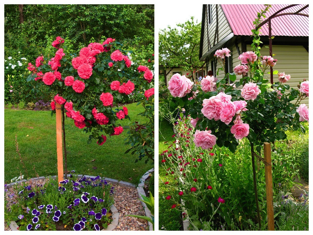 Воспарив в небо, покачиваясь на тонких ножках, штамбовые розы поглядывают на своих собратьев сверху вниз. Есть в них что-то сказочное и воздушное. Капризная красота, она не оставляет нас равнодушными.