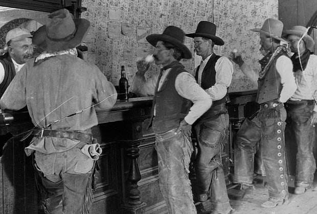 Эти западные салуны с характерными дверями, открывающимися в обе стороны, берут свое начало от придорожных закусочных, возле которых останавливались дилижансы, и от палаточных кабаков, которые сопровождали бригады, строившие железные дороги.