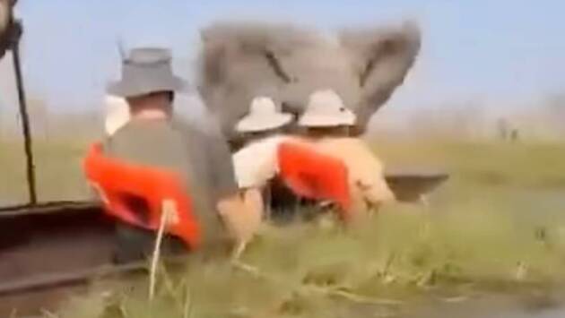 В Ботсване 28 сентября произошел опасный инцидент с участием дикого слона и туристов во время сафари. Видео инцидента публикует Daily Mail.