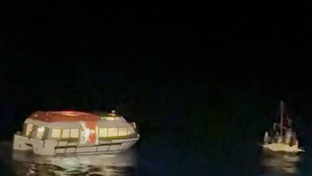 По наблюдениям очевидца, плавательное средство могло вскоре уйти под воду. Дрейфующих людей подобрали две спущенные на воду шлюпки.