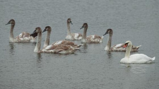 В этом году у пары лебедей появился выводок из шести птенцов. – Сегодня удалось очень близко наблюдать кормление семейства на мелководье. Это было фееричное зрелище. Лебеди-подростки пищали, как юные гусята. Взрослые на детей иногда шипели, – пишет женщина.