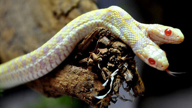 У 49-летней американки Энн-Кристин Сван из яйца вылупилась необычная двухголовая змея породы западный равнинный свиноносый уж. По ее словам, каждая голова первоначально пыталась «взять на себя руководство» и конфликтовала с другой.
