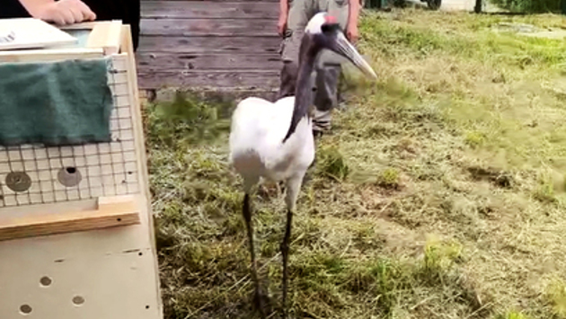 К одинокой самке японского журавля, живущей в Центре воспроизводства Московского зоопарка, наконец-то приехал жених.