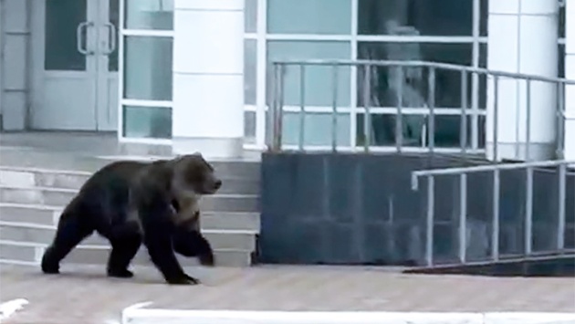 Медведь пробежал по центру Курильска в Сахалинской области