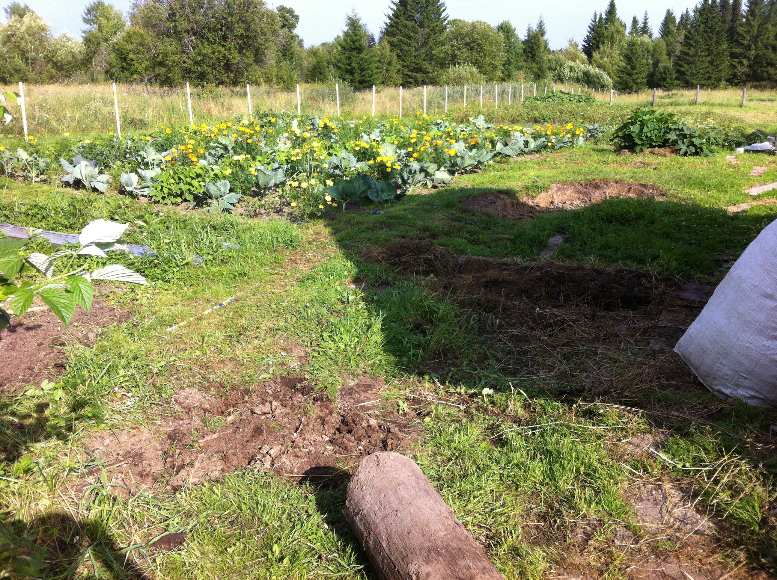 С этой задачей я справилась ещё за 2012-2013 годы. Так как столбов удалила очень много — выработалась определенная последовательность действий, которой я и хотела бы с вами поделиться. Но так как старые заборы удаляла достаточно давно и фотографий этого «подвига» не сохранилось, мастер-класс проведу на остатках столбиков, на которых стоял сруб старой стайки (помимо столбиков использовать землю мешали ещё и остатки бетонной отмостки). Удаляла их по своей, уже отработанной технологии🙂, и при проведении этих работ (пару лет назад) мы с мамой предусмотрительно провели их фотофиксацию😉.