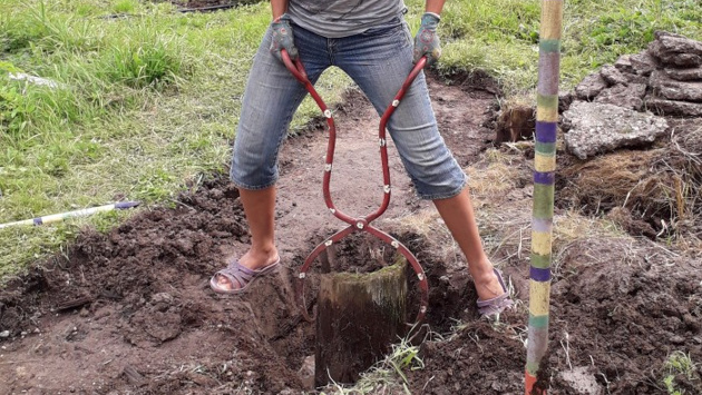 Чтобы использовать участок по-новому, пришлось удалять остатки всех деревянных столбов, а их было несколько десятков.