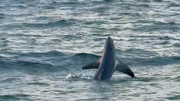 Потребовалось около 20 минут, прежде чем рыба выпрыгнула из воды, и стало ясно, что на крючке — акула. Примерно через час команда рыболовов смогла достать рыбу, чтобы отцепить её и отпустить на волю.