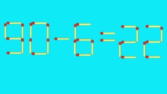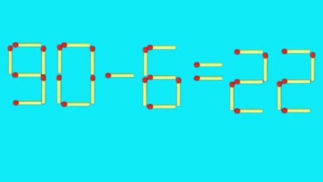 На картинке показано равенство 90 – 6 = 22, но оно неверно. Передвиньте одну спичку так, чтобы все стало правильно.