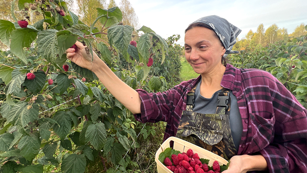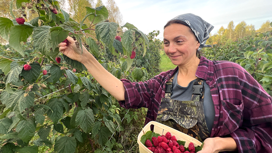 На берегу реки Елнать рыбаки. Осенью самый клев. А за сеткой-рабицей растет малина. Это хозяйство Анны Фосс. Осень стоит тихая, золотая. Прозрачные березы. В этом году малина уродилась. Раньше Анна работала в экспортной компании. Поездки в Ле-Бурже, Фарнборо, Эмираты, Индию, Китай. Закончила ИСАА, и дорога вела на самый верх. А вот купила по случаю 60 гектаров земли. И бросила эмираты с индиями. Отправилась в Елнать. Стала фермером.