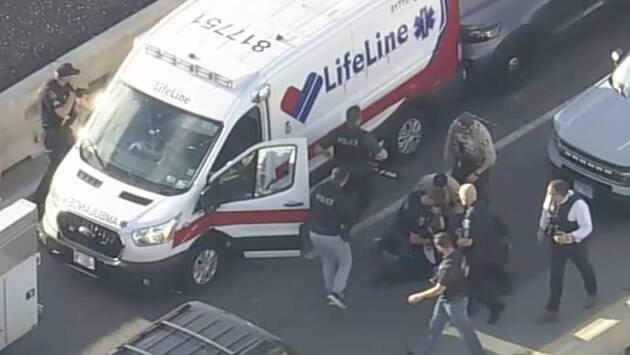 Угонщик проехал около 30 километров по загруженной вечерней трассе, хаотично перестраиваясь и подрезая другие машины, пока не застрял в пробке. Полиция использовала шипованные ленты, чтобы повредить ему шины. После этого его окружили и вытащили злоумышленника через разбитое окно. Медик не пострадал, а подозреваемый был доставлен в местную больницу для оказания медицинской помощи.