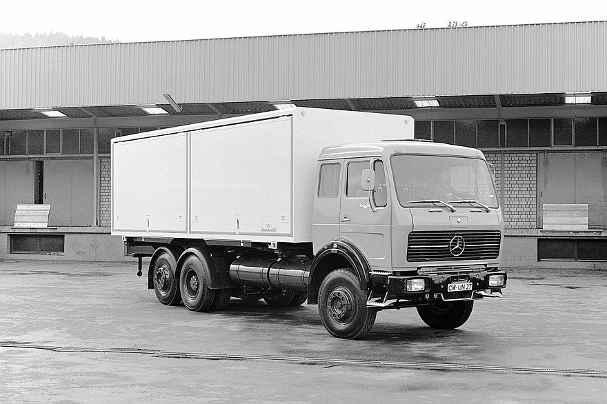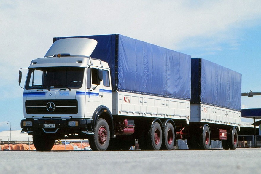 В СССР все было предельно просто: если авиакомпания, то монополист «Аэрофлот», если международный автогрузоперевозчик – то монополист «Совтрансавто». Если кто-то смог бы перенестись в Москву начала восьмидесятых годов в район Кунцево, то на пересечении Молодогвардейской улицы и МКАД он наверняка увидел бы с десяток стоящих на обочине синих фур «Совтрансавто» и броские, эффектные седельные тягачи Mercedes-Benz 2232S. Автору этих строк впервые довелось увидеть эти машины именно в те годы, именно в той локации, и они произвели такое впечатление – сочетание скрытой мощи и изящества, которое не забывается десятилетиями.