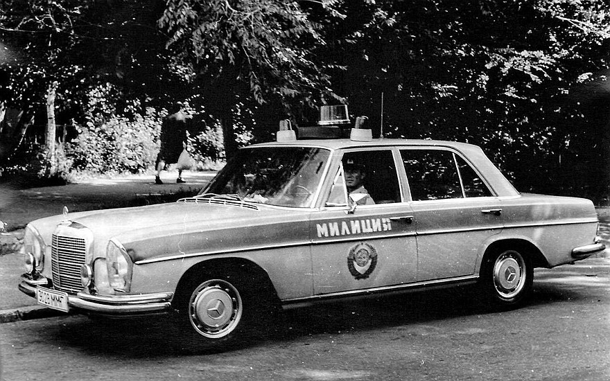 Иномарки на службе в полиции – кого этим сейчас удивишь? Но в начале семидесятых годов Mercedes-Benz W108 в милицейской ливрее вызывал настоящее изумление. Оснащалась такими машинами исключительно московская милиция, хотя и в некоторые другие города, например, в Ленинград, Киев и Минск, единичные автомобили отправлялись.