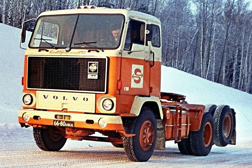 Шведский седельный тягач Volvo F89-32 начал поступать в ленинградское отделение «Совтрансавто» в 1973 году, то есть, на три года раньше, чем первые Mercedes-Benz 2232S добрались до своей кунцевской автобазы. Машины поставлялись в двух модификациях: с колесной формулой 6×2 и 6×4, оба тягача могли работать с прицепами массой 30 тонн, при этом они оснащались одинаковыми рядными наддувными дизельными «шестерками» объемом 12 л и мощностью 330 л.с.