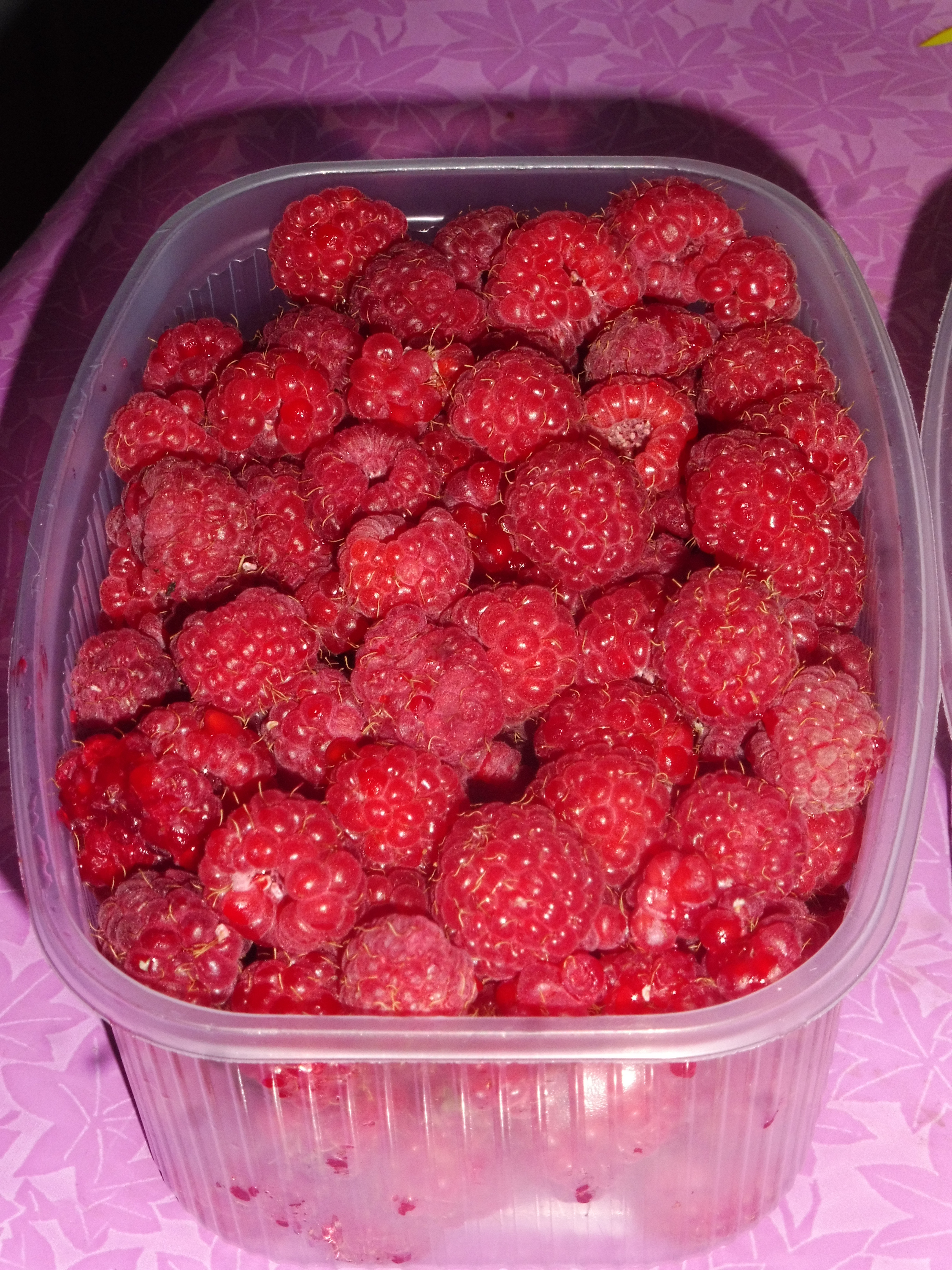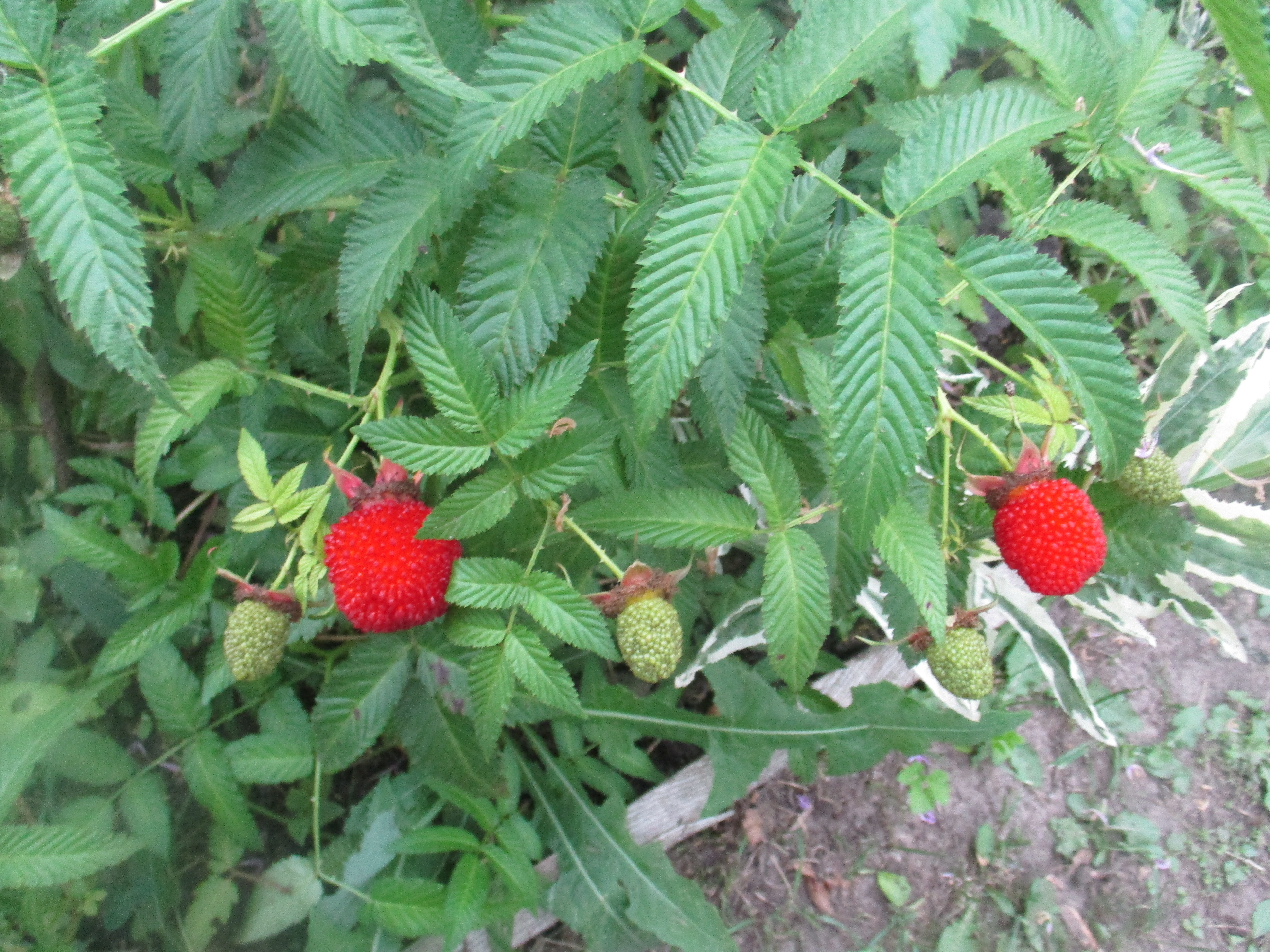 Есть 3 куста ремонтантной малины, но ее я не люблю, она слабого аромата и не сладкая. Растет для того, чтобы в сентябре внуки поели немного ягод. Осенью кусты этой малины все вырезаю полностью и укрываю хвойным опадом. Растет также 3 куста тибетской малины, она тоже невкусная, хотя очень привлекательная. Эту малину не укрываю, только обрезаю старые ветки.