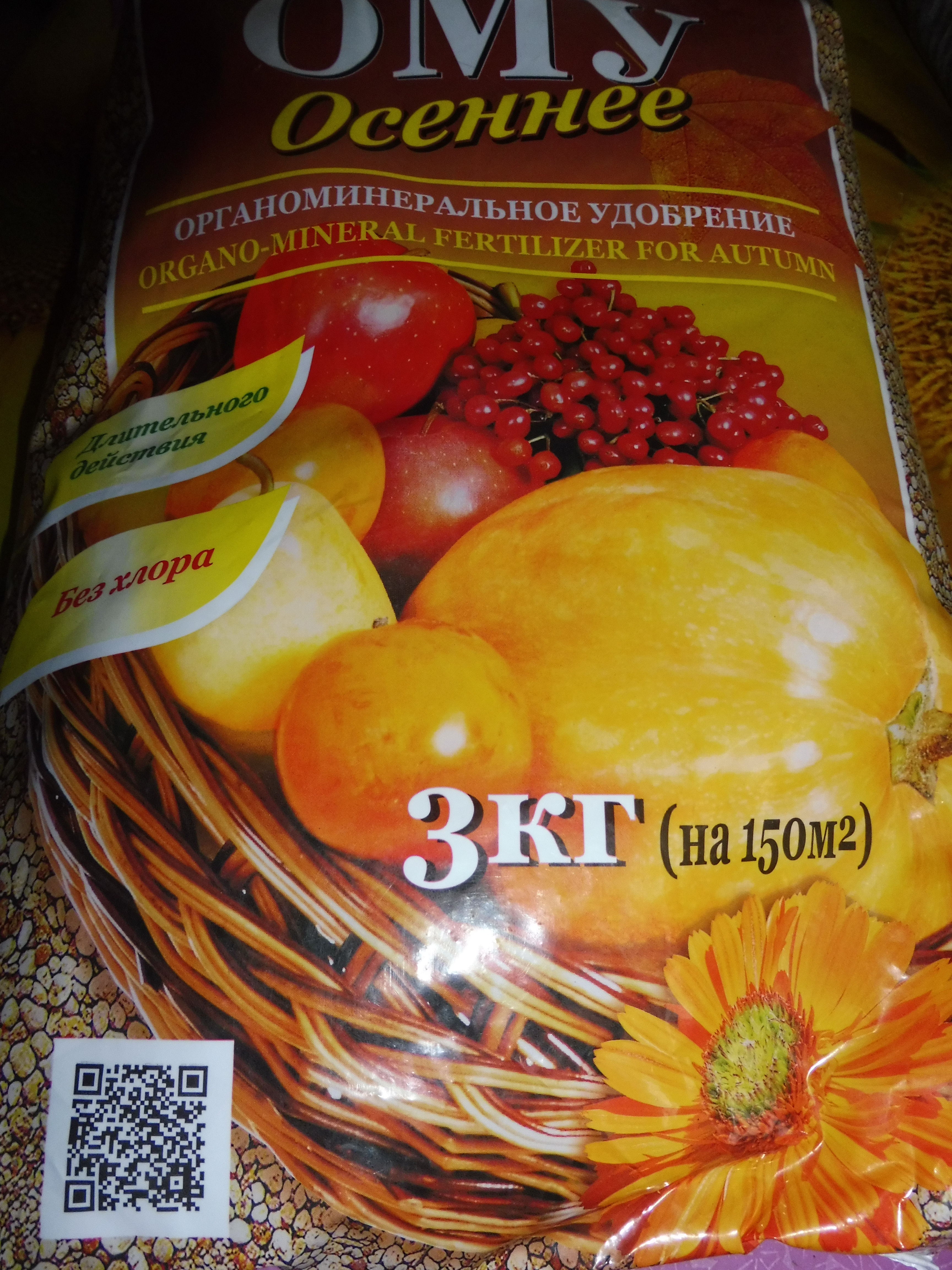 Осенью обязательно подкармливаю малину, обычно кладу под каждый куст какое-то осеннее удобрение, в этот раз положила «ОМУ осеннее».