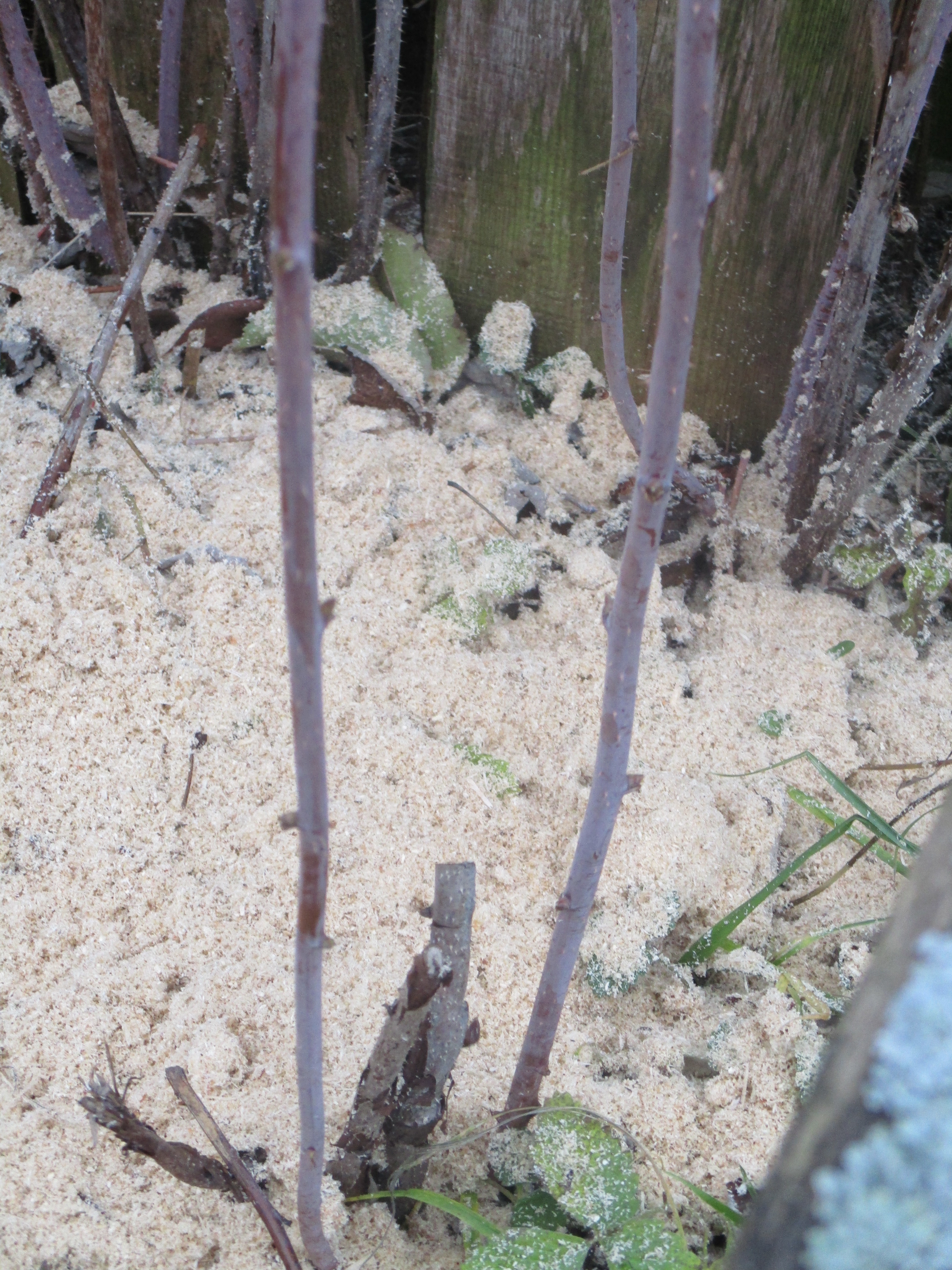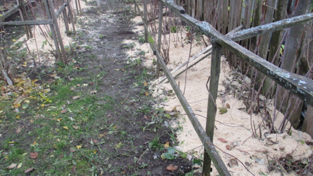 Опилки кладем сверху опавших листьев и остатков травы, все это хорошо перегниет на следующий год и отдаст свои полезные вещества нашей малине.
