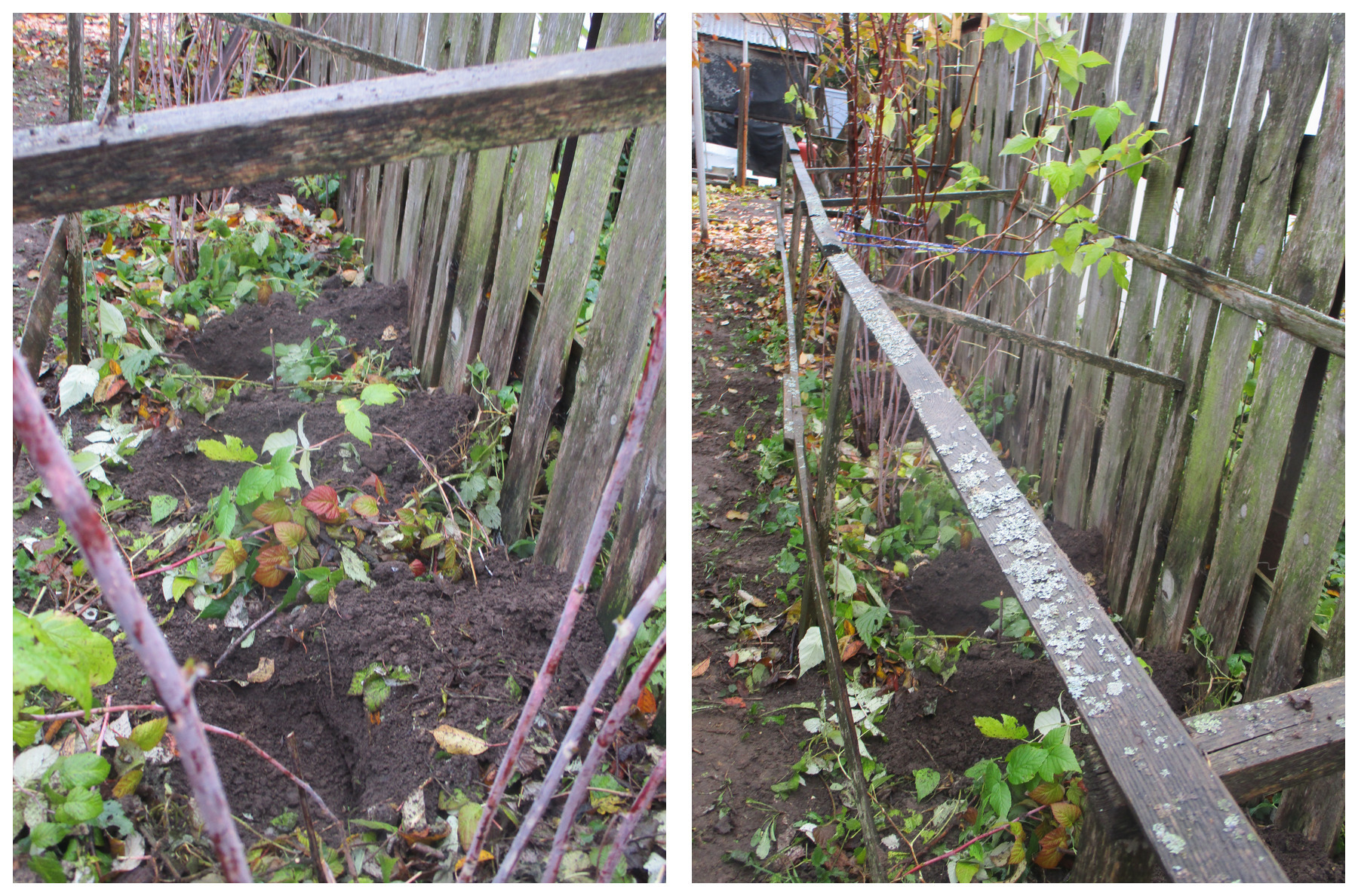 «Пеньки» у малины остаются примерно 20-25 см, весной их легко можно убрать. Кусты малины у нас посажены примерно через 50-70 см. В этом году пришлось подсадить еще несколько молодых кустов в малинник, так как некоторые кусты стали совсем мелкими, и мы их выкопали.