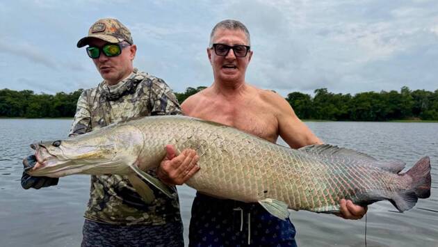 Длина улова составила 170 сантиметров. После измерений рыбу отпустили. Спустя время Мясников поймал вторую арапайму, с которой уже сделал несколько фотографий.