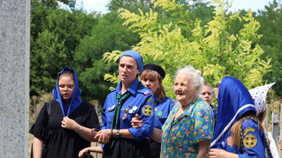Раиса Егоровна Тамбовцева (Солодилова) из станицы Новобейсугской и Лидия Васильевна Шапаренко из посёлка Советского рассказали православным следопытам Новобейсугского Георгиевского храма об оккупации и освобождении своих населённых пунктов. Немцы в доме Раисе Солодиловой было шесть лет, когда началась война. Отца — Егора Ивановича Солодилова, бригадира колхоза станицы Новобейсугской, — в первые дни по мобилизации призвали в армию. — Забрали его с группой станичников-мужчин до Краснодара. А на второй день они явились домой. Может, командир, что ли, не добрал свою группу? И мужчины вернулись на сутки. Пришёл он домой, а мамы, Анны Григорьевны, не было. Она была на пасеке, и он побежал к ней. Пришли они с пасеки — такие радостные. Он сутки побыл, опять все эти мужчины ушли на фронт. Отец в 1942 году в Керчи погиб. Мы об этом после войны узнали, — поделилась с ребятами Раиса Егоровна. Трудное время настало для семьи. Помимо младшей Раи, у Анны Григорьевны было ещё двое детей — Михаил, ненамного старше сестры, и двенадцатилетняя Елизавета. Также с ними жила папина мать — Прасковья Афанасьевна. Ещё труднее стало после оккупации Новобейсугской. — Тяжёлое время было, пока здесь немец был. В нашем доме тоже немцы стояли, — вспоминала Раиса Егоровна. В доме Солодиловых находился немецкий штаб или просто квартировались офицеры — шесть человек, как говорит Раиса Егоровна. Остальные 70 захватчиков разместились в другом жилье. Дом, некогда полный тепла и уюта, стал чужим. Жизнь превратилась в постоянное балансирование между страхом и надеждой. Семья ютилась на русской печке. Все другие комнаты заняли оккупанты. — Мы, детвора, — трое детей и бабушка наша старенькая, — прямо жили на печке, — рассказывала Раиса Егоровна. — Только мама ходила по дому. Бабушка всё переживала: «Ой, Анюта, смотри, чтоб немцы тебя не застрелили». Хлеб от повара В беседе Раиса Егоровна с благодарностью вспоминала пленного белоруса, служившего у немцев поваром. — Такой взрослый, приличный мужчина, как он мне казался. И вот он нам нарежет от булки… А хлеб — вот такой , белый, вот такие булки — где они брали?.. И он прям отрезает на всю булку, тушёнкой намажет и нам подаёт на печку. Или кашу гречневую — тоже с тушёнкой . Умер, конечно, давно, если где-то не погиб. Царство ему небесное, — продолжила рассказ Раиса Егоровна. А бабушка Прасковья Афанасьевна не переставала тревожиться: «Ой, сыночек, смотри, чтоб тебя немцы не убили. Заметят, скажут — русских кормишь». — Да я их всех могу сразу за одну ночь уложить, — то ли смеялся, то ли бодрился белорус. Но слова эти чем-то запомнились маленькой Рае. По словам Раисы Егоровны, немцы не проявляли какой то особой агрессии. Хотя, может, взрослые и скрывали от детей факты жестокости гитлеровцев, не допускали ситуаций, когда им могли бы навредить. А вот союзников нацистов — захватчиков-румын — девочка Рая невзлюбила. — Когда немцы были, ничего у нас по бригаде не шкодили, не трогали, а вот румыны… Вот они противные были, — продолжала рассказ Раиса Егоровна. — У нас корова была, и бабушка из молока, из сливок колотила масло, растапливала его, хранила в горшках. И вот бабушка подходит к маме и говорит: «Анюта, а вон румыны масло наше берут, едят». Они понамазали хлеб нашим маслом топлёным и во весь рот едят. Ну а что? Не будет же им ничего… Событие30 янв