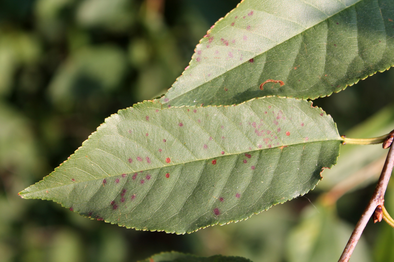 Вишня также поражается коккомикозом. Это грибное заболевание становится причиной преждевременного опадения листьев в конце лета. В теплую осень часто наблюдается вторая волна роста, а следом почти гарантированно возникают зимние повреждения. Вишни, лишившиеся листьев на 2-3 месяца раньше нормы, неизбежно оказываются сильно ослабленными.
