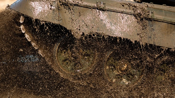 В то же время легко определяется тип тяжелого каткового трала - это ТМТ-С, обладающий сплошной полосой траления и встроенной электромагнитной приставкой ЭМТ, предназначенной для нейтрализации заложенных мин с неконтактными магнитными взрывателями. Экипаж также применил дополнительный самодельный обвес в виде цепей с трубами.