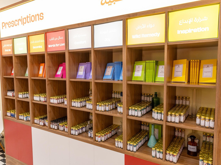 Аптека наполнена множеством бутылочек, так что глаза разбегаются. Как-то выдающийся российский мультипликатор Юрий Норштейн сказал, что голос актера Алексея Баталова обладает терапевтическими свойствами, его можно разливать по бутылочкам и выдавать тем, кто нуждается в исцелении. Так и тут поэзию выдают во флакончиках. Надо только проконсультироваться с британским специалистом прямо на ярмарке.