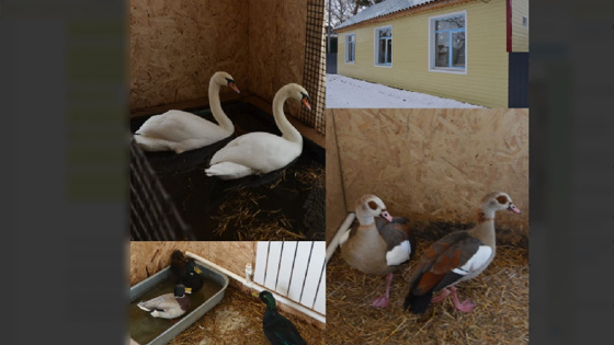 Знаменитые ивановские лебеди Пётр и Феврония зимуют в комфортных условиях. В Доме природы Ивановки в помещении для птиц поддерживается плюсовая температура, а для плавания оборудован бассейн.