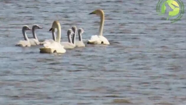 В заказнике «Светлинский» запечатлели семью лебедей