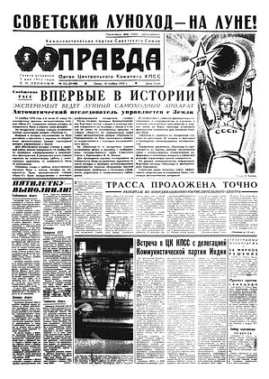 В сообщении ТАСС отмечалось, что впервые в истории космонавтики на Луну доставлен и приступил к научным исследованиям луноход, управляемый с Земли. «Для обеспечения посадки станции в заданный район лунной поверхности 16 ноября было проведено маневрирование в окололунном пространстве. В результате этого станция перешла на эллиптическую орбиту с минимальным удалением от поверхности Луны 19 километров», — говорилось в сообщении ТАСС.
