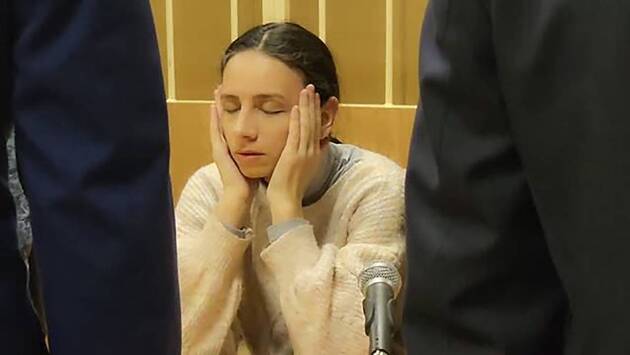 На кадрах видно, как женщина вытирает слезы, после чего опускает голову и подпирает ее руками. На вопрос, понятен ли ей приговор суда, Кохал ответила отрицательно.