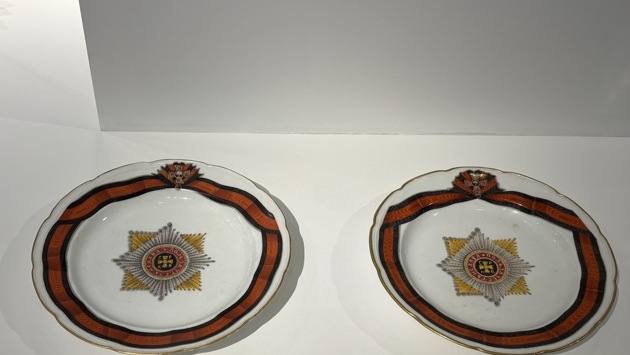 А ларчик, как говорится, просто открывался… Наличие стеклянной посуды (рецептурой стекла занимался сам Ломоносов, кстати), как и фарфоровой, — тоже результат труда ученых эпохи Просвещения. Но вот что еще интересно: для экспозиции выбрали не просто какой-нибудь фарфор, как символ знаменательного открытия, а так называемый орденский сервиз, а точнее предметы из сервиза ордена Святого равноапостольного князя Владимира — один из четырех наборов посуды, выполненных по заказу Екатерины Великой, другие три вдохновлены орденами Георгия Победоносца, Андрея Первозванного и Александра Невского. Раз в год императрица организовывала банкеты для кавалеров этих орденов, на которых эти сервизы и использовали. Так что это не просто эстетика и красота, но еще и утилитарная история.