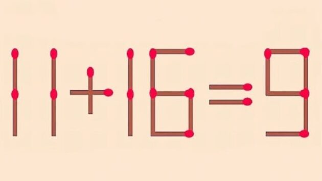 Перед вами классическая советская головоломка: 11 + 16 = 9. Равенство, конечно, не сходится. Но все можно исправить перемещением всего одной спички. Попробуйте найти решение за 13 секунд, отмечает ИА Nord-News.
