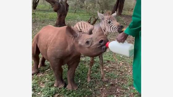 Детеныша черного носорога по кличке Титан и детеныша зебры — Нотти — привезли в заповедник с разницей в неделю. Их матери упали с утеса, поэтому сотрудники Sheldrick Wildlife Trust приютили их. Директор по коммуникациям питомника Шон Майкл уверен, что животные подружились из-за общего повода для грусти.