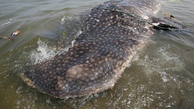 Рыбаки в Индии поймали китовую акулу весом пять тонн, которая считается самой большой рыбой в мире. Об этом сообщает Odisha TV.