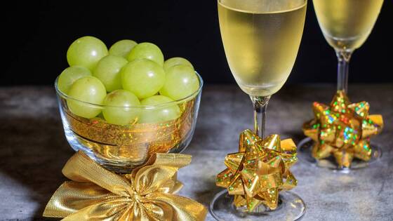 Заранее подготовьте виноград, избавьтесь от веток, чтобы остались лишь плоды. Когда начнут бить куранты, съедайте по одной виноградине при каждом ударе. Считается, что тот, кто успеет съесть 12 виноградин до наступления Нового года, будет счастлив и удачлив следующие 12 месяцев.