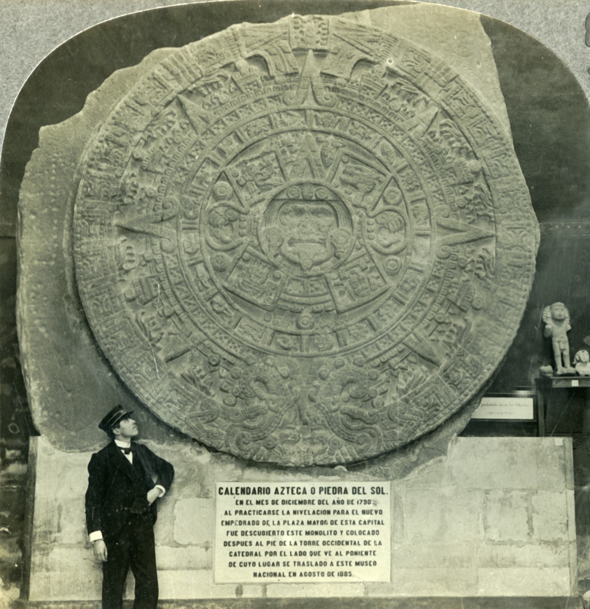 О памятнике успели позабыть. И только 17 декабря 1790 года на него наткнулись рабочие, которые прокладывали водопровод и ремонтировали тротуарное покрытие. Позже вице-король Новой Испании Хуан Винсент де Гуэмес Пачеко и Падилья, граф де Ревильяхихедо, приказал перенести монумент к западной башне Кафедрального собора в Мехико, чтобы им могли любоваться жители и гости города. На этом месте он простоял почти столетие.