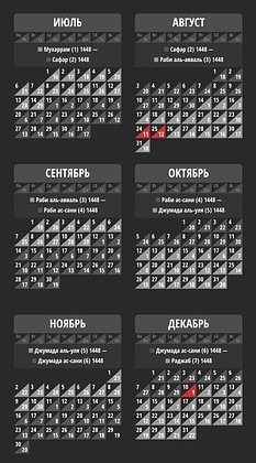 Ввиду того, что в разных мусульманских странах гласные арабского языка могут читаться по-разному, «Лента.ру» приводит названия месяцев и праздников в стандартной русской транскрипции. Добавим также, что для удобства все мусульманские даты представлены в очередности, привязанной к современному календарю.