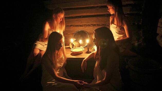 «Юным незамужним девушкам, конечно же, страшно было встретиться с неизведанным в одиночку, — говорит Тамара Власова. — Поэтому устраивали, как сейчас бы сказали, тематические вечеринки, когда где-нибудь на отшибе, в нетопленной бане, собирались все подружки. Гадание в основном было двух видов — девушки пытали, какой будет муж, а люди постарше хотели знать, чего ждать в новом году. С зеркалами гадание считалось самым страшным, поскольку вместо жениха в зеркальном бесконечном коридоре можно было увидеть банника — злого духа, обитающего в бане, а то и самого черта».