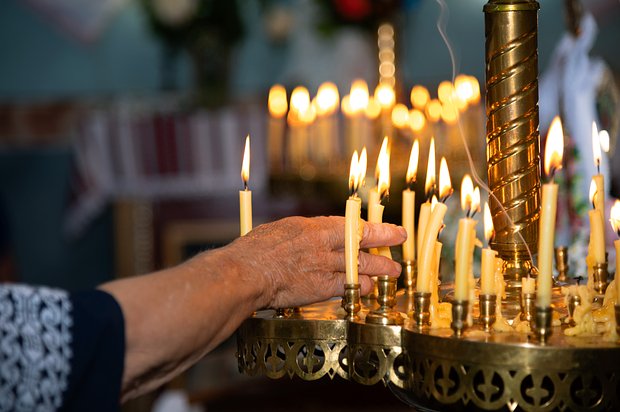 3. Верующие ставили свечу ..., вознося тихую молитву.