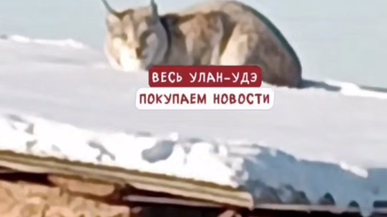 В Бурятии рысь вышла к людям и устроилась на крыше дровяника