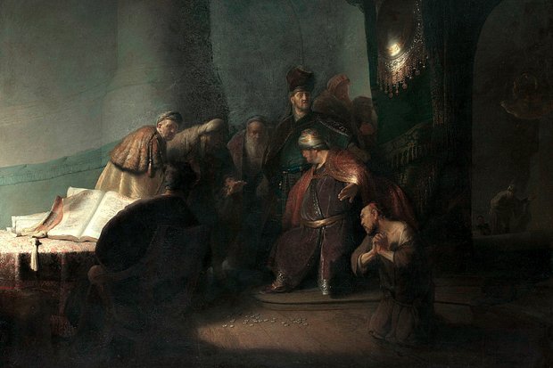 В то же время у первосвященника Каиафы собрались высшие чины церкви и народные старейшины. На совете они начали обсуждать, как бы избавиться от Иисуса, который в Великий вторник делал губительные для их власти заявления — о грядущем Страшном суде и о кончине прежнего мира. Сошлись на том, что казнить Христа надо как можно скорее, но не в праздник иудейской Пасхи, чтобы избежать возможного мятежа возмущенной толпы.