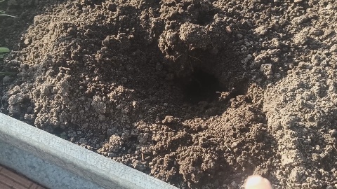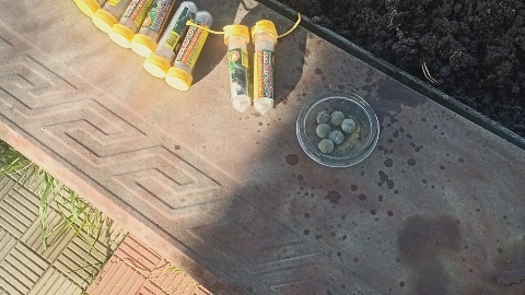 Положили таблетки, предварительно немного смочив их водой, закрыли бумагой и засыпали землей. Тут нужно сказать, что таблетки очень вонючие и работать с ними нужно быстро и осторожно. Дома лучше не открывать.