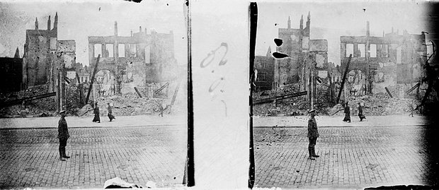 Это небольшая коробка Agfa со стереонегативами размером 4,5x10,5 см и две коробки Eisenberger со стеклянными негативами двух размеров 9х12 и 10х15 см. Все они сняты неизвестным фотографом в период с начала 1914-го и почти до конца войны 1917 года. Можно предположить, что фотограф прошел всю войну.