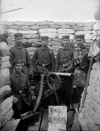На одной из фотографий запечатлены немцы из 65-го пехотного полка с пулеметом MG 08 (Maschinengewehr 08). Это один из вариантов «Максима». Это весьма грозное оружие, но к тому моменту устарело, его применение в вермахте объяснялось только нехваткой более современных пулеметов. Однако это самый массовый пулемет немцев.