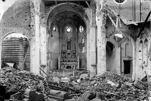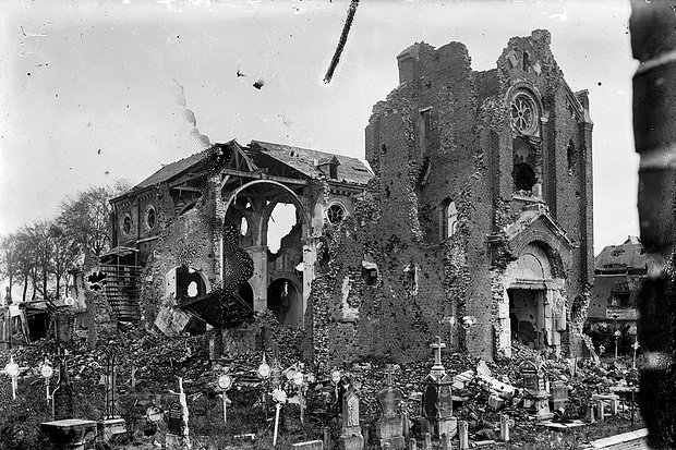 Первая мировая война расширила границы разрушений и варварства, подготовив мир к еще большим ужасам Второй мировой. Подготовив к тому, к чему невозможно быть готовым и привыкнуть. Особенно мирному населению. На кадрах запечатлены руины церкви Радингем-ан-Веп, коммуна в департаменте Нор на севере Франции.