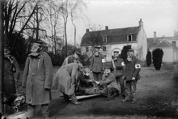 В Первой мировой войне в немецкой армии вели поисковые работы с собаками, обученными для поиска раненых. Такие собаки назывались «собаками милосердия». Подготовка собак началась еще в 1884 году, они готовились для сторожевой, разведывательной, санитарной служб и службы связи. К 1914 году в Германии имелось около десяти тысяч хорошо подготовленных военных собак, впоследствии их численность была доведена до тридцати тысяч.