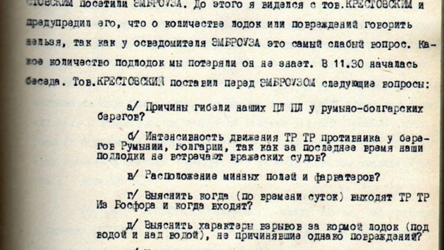 В отчете отмечается, что британская разведка старалась достать сведения о боеспособности Черноморского флота, о количестве потерянных кораблей и подлодок. Сама же в ответ не особо стремилась делиться данными о передвижениях противника у берегов Румынии и Болгарии и другой информацией.