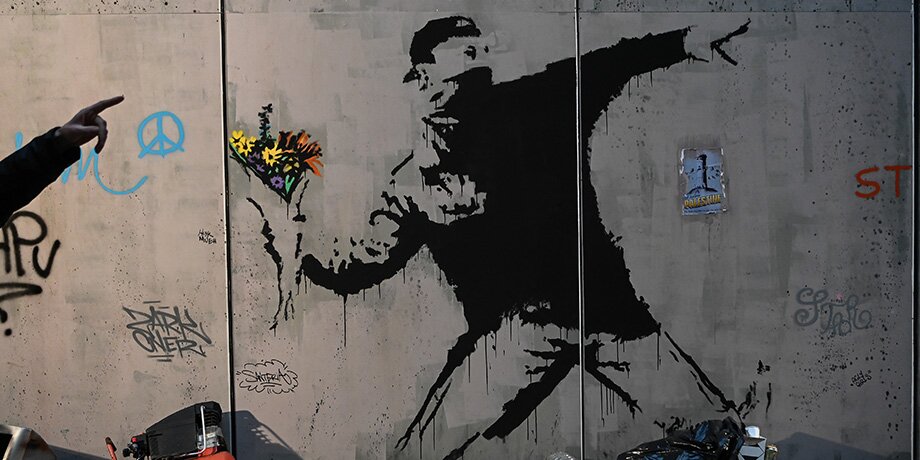 Граффитчик прославился рисунками с острым социальным подтекстом. Например, одной из самых знаменитых работ Бэнкси стала "Человек, швыряющий цветы" (2003): на нем мужчина в маске бросает в невидимого врага не камень, а растения. Считается, что художник выразил надежду, что когда-нибудь люди начнут выяснять отношения не с помощью вооруженных конфликтов, а более дипломатичными способами.