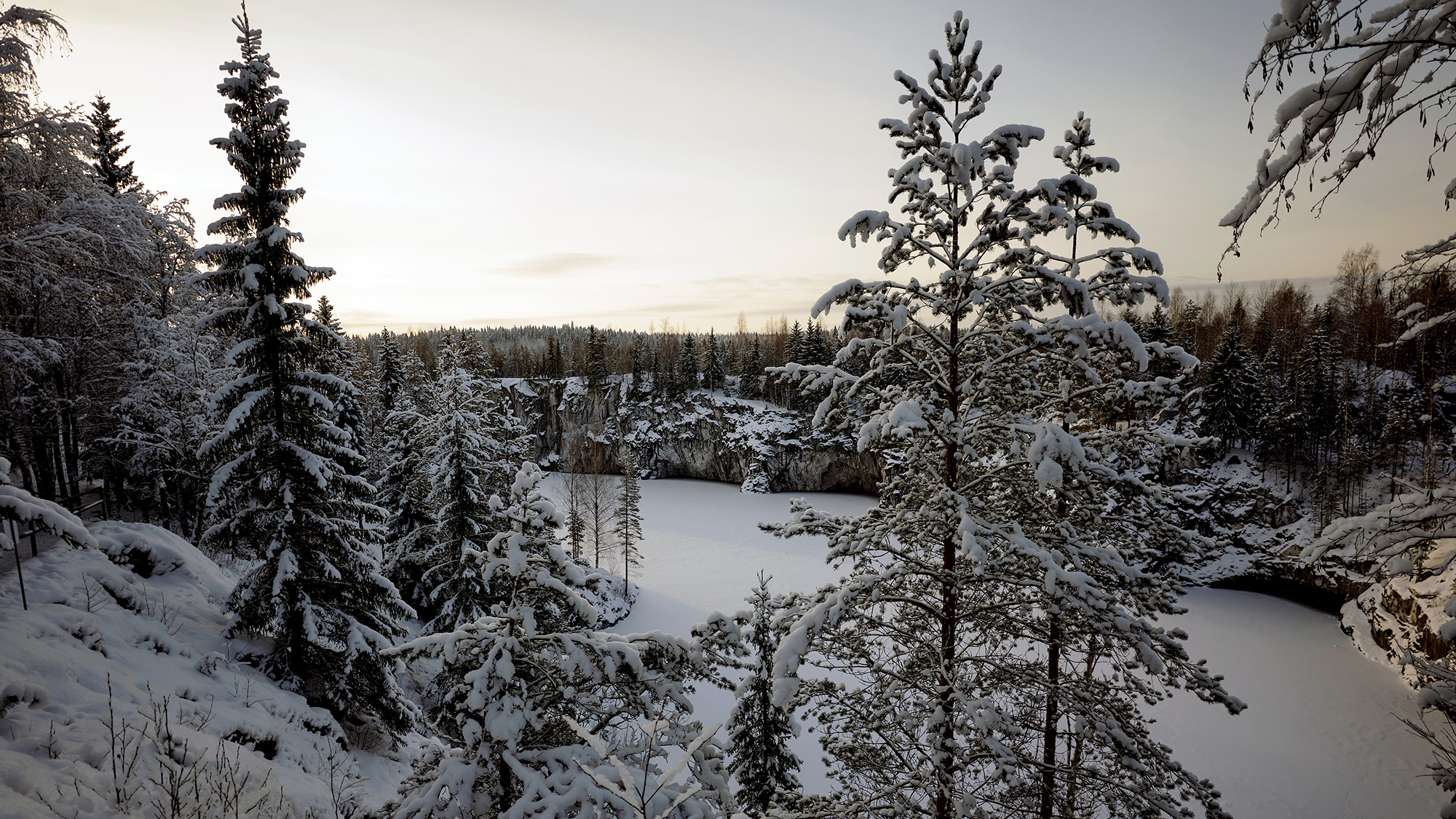 Что посмотреть. Побывать в Карелии в новогодние праздники стоит тем, кто любит отдых на природе. Заснеженные вершины деревьев, протяжённые леса, красивые каньоны погрузят путешественников в атмосферу сказки. Можно отправиться на древние острова Валаам и Кижи, не замерзающий даже зимой водопад Кивач, в горный парк «Рускеала», где находится знаменитый Мраморный каньон, этнопарк «Сампо», в котором можно узнать о героях карело-финского эпоса, подняться на мистическую гору Воттоваара. А в национальном парке «Паанаярви» можно увидеть северное сияние.