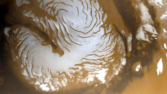 Ученые Геологической службы США обнаружили, что под поверхностью Марса на глубине 1-2 метров залегают обширные пласты чистого водяного льда толщиной до ста метров.